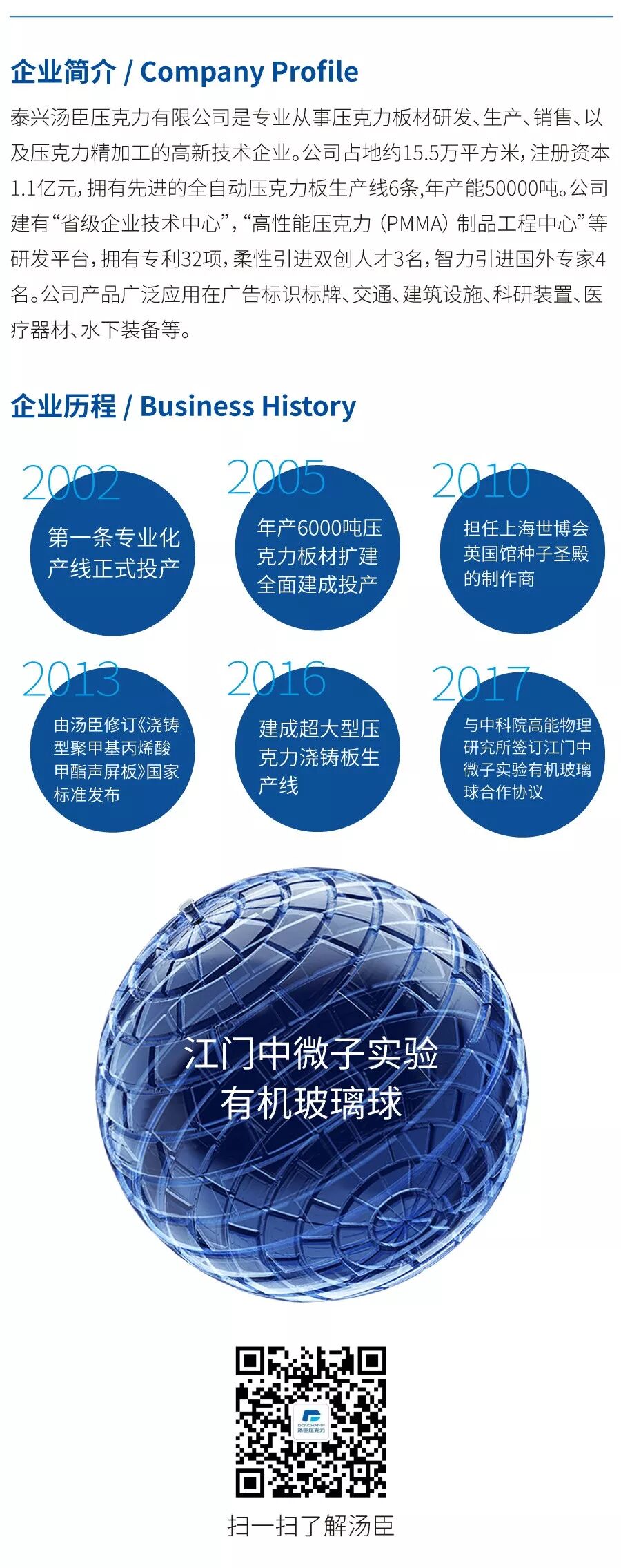 近年来,社会飞速发展,楼宇越建越高,设计的创造性和独特性越来越受到大众的追捧和认可,很多独具匠心的构思需要新材料来实现,尤其体现在建筑、家居、展示等领域。为此,汤臣的研发团队在专业领域不断创新,自主研发了性能优越的压克力特大特厚板。
